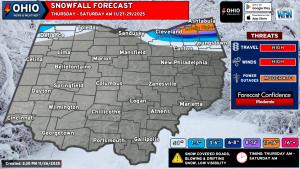 A threat for severe weather across Ohio on Tuesday remains in place, with an Enhanced Risk for severe weather across