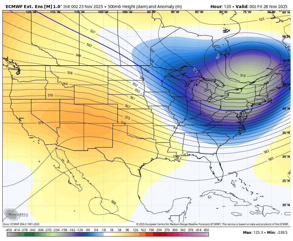 The overall pattern turns colder as a strong low pressure system tracks across the Great Lakes on Wednesday. A strong cold front will also move through the region, ushering in much colder air. Aloft, strong pressure drops will aid in ushering cold air to the surface and the cold front, followed by a few troughs and favorable winds, will allow for the development of lake effect snow from Thanksgiving Day through early Saturday (at least).